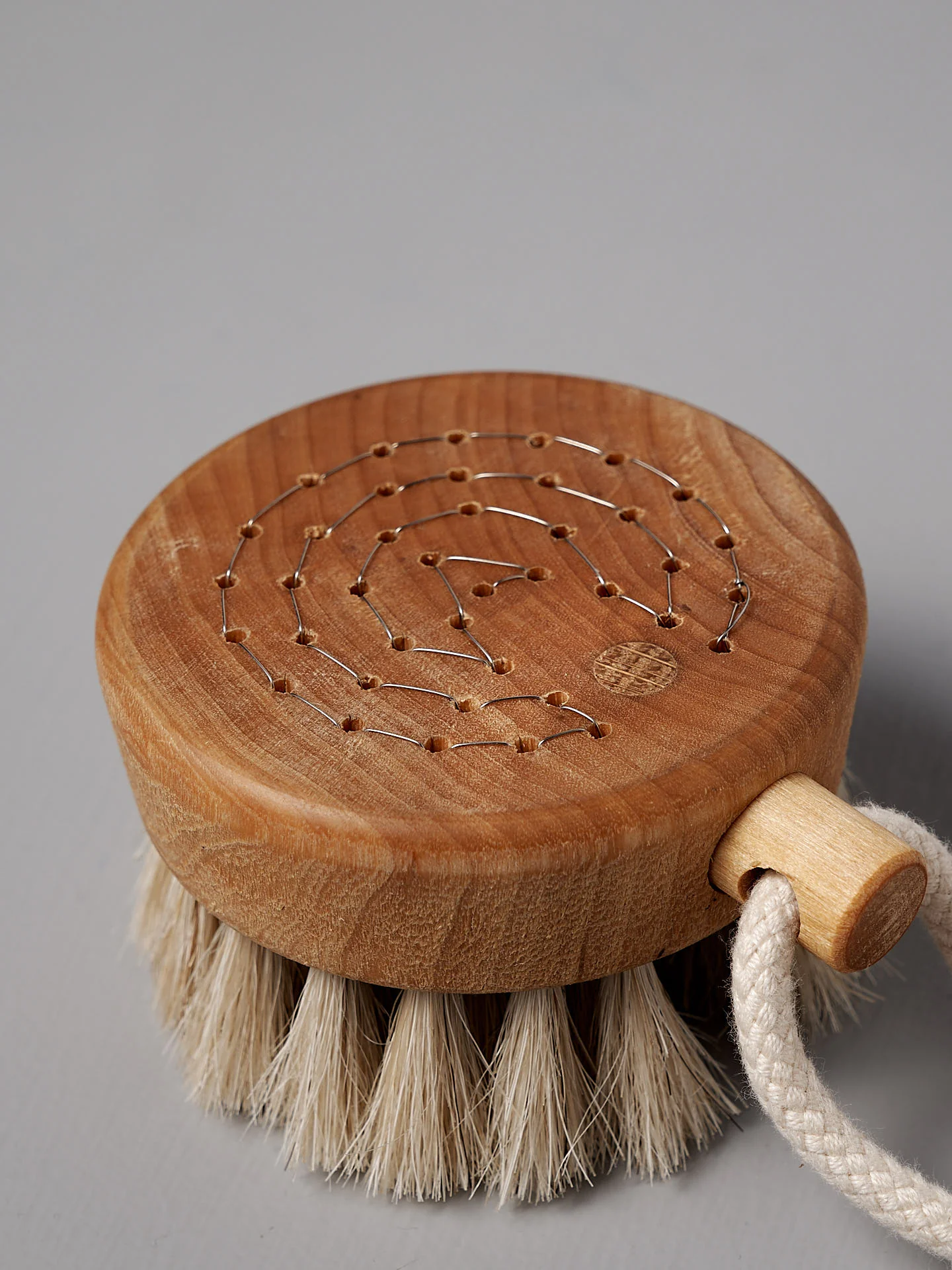 Bath brush in birch and horsehair. A handy size to keep close and on a rope it's always at hand in the bath or shower. Horse hair is an excellent material in bath brushes because it is soft and pliable while it is sturdy and durable and has a certain elasticity. Along with a good soap it gives a soft and comfortable lather for a perfect cleaning.